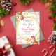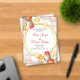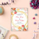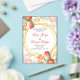 "Vibrant wedding invitation adorned with colorful tulips in shades of red, orange, yellow, and pink, beautifully framing the text within elegant golden circles. The combination of floral artistry and refined typography creates a joyful and romantic design, perfect for celebrating love in style."