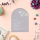 This elegant contemporary wedding invitation features white line art flowers and white script on a transparent dusty blue background.