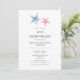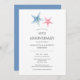 Estas invitaciones para el 50 aniversario de los bodas incluyen estrellas de color acuático. Utilice los campos de plantilla para agregar los detalles del personalizado. Solicite tarjetas impresas en línea o invitaciones imprimibles. Una elección costera para eventos con temática costera, náutica y de playa. Para ver más diseños como este visite www.zazzle.com/dotellabelle Arte y diseño de acuarelas únicas de Victoria Grigaliunas de Do Tell A Belle.