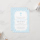 Una elegante y minimalista invitación a la cristiandad o al bautismo en azul, blanco y gris. La invitación tiene la cruz sagrada y el patrón de zigzag de chevron azul y blanco para el fondo. Personalice fácilmente los detalles del evento para el bautismo de un niño.