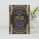 Invitaciones de compromiso Art Decó - Estilo Art Decó negro y oro - Impresión trasera incluida - Ver Wow Meow para la colección completa.
