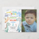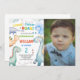 Invitaciones al cumpleaños de los dinosaurios verdes azules con foto