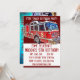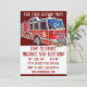 Un camión de bomberos vibrante y colorido adorna esta impresionante plantilla de invitaciones para la fiesta de cumpleaños de los niños en camiones de bomberos. La parte trasera tiene un camión de bomberos y dice "Fiesta de cumpleaños de camión de bomberos" y la parte delantera tiene otra hermosa fotografía de camión de bomberos impresa con la información de tu fiesta de cumpleaños. El motor tiene incluso la edad de su hijo para el número de motor.