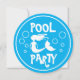 Invitaciones de cumpleaños del Fiesta de la piscina infantil con sirena. Bajo el mar se organiza una fiesta de natación para los niños. Texto personalizado y color de fondo. Diseño de peces de cuento de hadas con nombre y edad de niño. Plantilla de tipografía caprichosa. Forma de corte de círculo redondeado. Haz invitaciones circulares para el cuarto cuarto chica, el sexto, el octavo, el décimo décimo, el duodécimo, el decimotercero, etc. texto y gráficos personalizados. ¡Genial en verano!