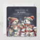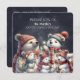 Una familia de osos polares vestida para las vacaciones, invitando a su familia a un día de diversión de vacaciones.