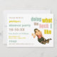 ¡Puaj! ¡Por fin estás libre! Divorcio retro divertido invitaciones. Imagen de chica de alfiler vintage en la parte superior y falda delgada con medias y jarras (suspendedores), sosteniendo una bebida en celebración. El texto de un lado dice: haciendo lo que me gusta, en negrita azul, verde y marrón. personalizable total para que usted añada sus propios y maravillosos detalles de fiesta de la libertad!