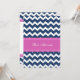 Invitaciones de encargo del fiesta de Mitzvah del palo en rosas fuertes fucsias elegantes, modelo retro oscuro del azul marino y blanco de los galones de los zigzags del vintage. Añada su nombre y vaya de fiesta los detalles para una invitación única y elegante del fiesta de Mitzvah del palo.