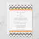 Las tarjetas de encargo de la foto de la invitación de la boda en galón retro y casual elegante y contemporáneo del gris de carbón de leña, del naranja de la mandarina y blanco zigzaguean modelo de las rayas. Modifique estas invitaciones para requisitos particulares con sus detalles del boda y su propia foto. Disponible en hacer juego los productos para todo su boda necesita.