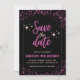 Invitaciones rosas de cumpleaños 19 Salven la fecha negro purpurina de moda Glam brillo