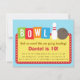 ¡Una invitación colorida y de la diversión de los bolos de cumpleaños de la fiesta para más viejos niños y las adolescencias que prefieren un juego de los bolos de la diversión con sus amigos! Se arregla la invitación a parecer una muestra de los bolos con los alfabetos que componen el CUENCO en diversos colores. Hay también un perno de bolos blanco y una bola gris. Personalice fácilmente con los detalles del fiesta.