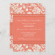 Invitaciones del fiesta de compromiso en naranja y crema elegantes del melocotón del modelo floral clásico blanco del damasco. Completamente adaptable con sus detalles del fiesta de compromiso. También disponible en una amplia gama de los productos a juego del boda.