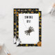 Invitaciones divertidas a fiestas de Halloween o invitaciones a la casa abierta con una araña personalizado que gira a la par.