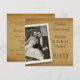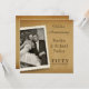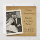Invitaciones elegantes para fiesta de aniversario número 50 con tipografía elegante de estilo retro vintage en relieve sobre papel viejo de aspecto pergamino y acentuadas con inserto de foto. Sube tu foto y agrega los nombres, fecha y detalles. Pueden personalizarse fácilmente para muchas ocasiones especiales y celebraciones de hitos felices: aniversarios número 25, 30, 45, 60, 65, 70, fiestas de cumpleaños, bodas, para guardar la fecha o cualquier evento único. Tarjetas de agradecimiento y de franqueo coordinadas disponibles a petición.