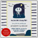 Invitaciones para el 2º cumpleaños de Halloween lindas para los niños: Esta invitación para el 2do cumpleaños de Halloween en gris con este lindo cráneo kawaii (esqueleto), murciélagos voladores y estas lindas rayas en la espalda, es para el bebé ( niños / niños - género neutro ). (Personalice las informaciones: nuestro pequeño libro está a la vuelta de dos. Únete a nosotros para el espumoso cumpleaños de Alexander XXXXX de octubre XX...)