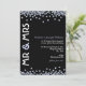 Una bonita y moderna invitación de aniversario de bodas de diamante en negro y blanco con toques de azul pálido. En los bordes superior e inferior de la invitación hay piezas de purpurina de diamantes dispersas, formando un borde parcial. En el lado izquierdo de la invitación está "Sr. y Sra." en una fuente en negrita, mientras que el texto de la invitación está alineado en el lado derecho. Se ha elegido una divertida mezcla de estilos de fuentes modernas para acentuar el diseño.