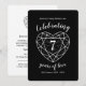 arte gráfico de línea simple efecto piedra corazón negro y blanco invitaciones de aniversario de bodas 7. Personalice con los detalles de su fiesta de bodas 7. El aniversario de bodas número 7 está asociado con la piedra preciosa ónix negro y el corazón simboliza el amor. Gráficos y diseño de Sarah Trett para www.mylittleedenweddings.com en zazzle.