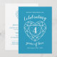 Invitaciones de aniversario de bodas de Topaz azules y blancos con gráficos de arte de línea de efecto de piedra de corazón de contorno simple. Personalice con los detalles de su fiesta de bodas número 4. El aniversario de bodas número 4 está tradicionalmente asociado con piedras de topacio azul y el corazón simboliza el amor. Gráficos y diseño de Sarah Trett para www.mylittleedenweddings.com en zazzle.