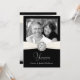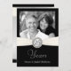 Invitaciones personalizadas para fiesta de aniversario de boda -- invitaciones falsas de bolsillo totalmente personalizables con botón de monograma elegante en cinta blanca sobre fondo plateado y negro. Agregue su propia foto y personalice los nombres, fechas y detalles para la ocasión especial. Perfecto para fotos de boda contemporáneas o vintage. Sobres, estampillas y tarjetas de agradecimiento disponibles. **NOTA: Tamaño para tarjetas de invitación PEQUEÑAS de 5 x 7. POR FAVOR, VER OTROS TAMAÑOS DISPONIBLES EN LA GALERÍA.