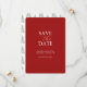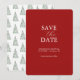 Anuncia tu compromiso con esta sencilla tarjeta de "guarda la fecha" de boda sin foto para las fiestas. Cuenta con una mezcla de tipografía clásica y de escritura en blanco sobre un fondo rojo de baya sólido. La tarjeta se revierte a un patrón de árbol botánico de acuarela. Utilice los campos de plantilla para personalizar con su nombre y fecha de boda. Incluso personalice los colores para que se ajusten a su tema de boda deseado. Elija entre una variedad de tarjetas de alta calidad. Mi favorita para esto es perla con brillo. Un diseño minimalista para bodas y anuncios de compromiso durante las fiestas de Navidad. Para ver el conjunto de papelería de boda que incluye las tendencias de boda visite www.zazzle.com/dotellabelle