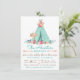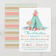 Invitaciones de baby shower de tipi para niñas con un tipi elegante en color menta, azul turquesa y azul, con flores elegantes y un letrero de madera rústica con la leyenda 'es una niña' con fondo tribal azteca en coral, menta, azul turquesa y dorado en la parte posterior. Puede personalizar fácilmente estas hermosas invitaciones de baby shower de tipi para su evento simplemente agregando sus detalles. Este es un diseño impreso.