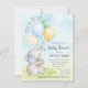 Invitaciones de baby shower de elefante niño con adorable elefante bebé acuarela con globos en un fondo de cielo y hierba. Estas invitaciones de elefante niño para baby shower son fácilmente personalizables para su evento simplemente agregando sus detalles.