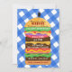 Invitaciones de barbacoa para parrillada de verano de hamburguesa azul.
