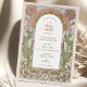 Esta impresionante invitación de desayuno de novia presenta el icónico estilo Art Nouveau de Alphonse Mucha. El diseño está inspirado en las líneas elegantes y curvas fluidas del Art Nouveau, con un toque de glamour Art Deco. La invitación cuenta con detalles florales intrincados. El texto está impreso en una fuente elegante, perfecta para cualquier celebración de desayuno de novia.