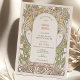 Esta impresionante invitación de boda presenta el icónico estilo Art Nouveau de Alphonse Mucha. El diseño está inspirado en las líneas elegantes y curvas fluidas del Art Nouveau, con un toque de glamour Art Deco. La invitación cuenta con detalles florales intrincados. El texto está impreso en una fuente elegante, perfecta para cualquier celebración de boda elegante.