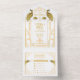 Elegantes invitaciones de boda blancas y con lámina de oro falso que incluyen la información de la boda y la tarjeta postal de RSVP que sus invitados arrancan y envían. No se necesitan sobres. Estas presentan pavos reales deco y halcones en lámina de oro falso y otros elementos deco. ¡Genial para una boda de Gatsby, años 20, Flapper, Prohibición o una boda elegante por la noche! ¡Artículos coincidentes en este!
