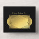 Elegantes invitaciones de boda en negro y hojalata dorada que incluyen la información de la boda y la tarjeta postal de RSVP que sus invitados arrancan y envían. No se necesitan sobres. Estas presentan pavos reales deco y halcones en hojalata dorada y otros elementos deco. Genial para una boda Gatsby, Roaring 20's, Flapper, Prohibición o una boda elegante por la noche. ¡Artículos coincidentes en este!