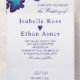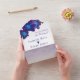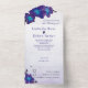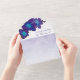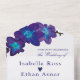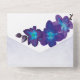 El conjunto de invitaciones de boda personalizables 'Orquídea Azul' incluye invitación, respuesta y tarjeta de alojamiento