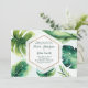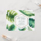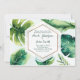 Invitaciones de boda blancas con hojas tropicales verdes. Personalice para cualquier evento.