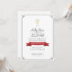 Invitaciones de boda con pancarta roja y brindis de champán elegante.
