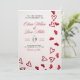 Invitaciones blancas con corazones rojos dispuestos de manera hermosa y elegante diseño geométrico simple y para los amantes de los corazones románticos, y una línea roja y negra para que se vea más coherente Disfruta de invitaciones de boda atractivas y ordena ahora