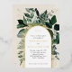 Invitaciones de boda de jardín botánico con vegetación moderna. Esta elegante invitación de boda arqueada es una opción perfecta para una boda de jardín al aire libre en primavera o verano. Cuenta con hojas botánicas pintadas con acuarela con marcos arqueados modernos y la inicial de los novios en hermoso foil dorado. Haz que estas invitaciones de boda de jardín sean una invitación elegante y única que cause una primera impresión en tus invitados.