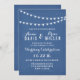 ¿Tienes una boda rústica o te gusta el estilo retro? Personaliza tus propias invitaciones de boda con luces de cadena de verano azules en pizarra. Personaliza tus invitaciones cambiando el estilo de fuente, color y más haciendo clic en el botón "Personalízalo" debajo de la imagen del producto.