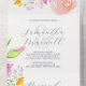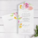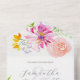 Estas invitaciones de boda con tarjeta de respuesta presentan flores botánicas de acuarela en tonos de rosa, naranja y melocotón con un toque de lavanda. Una elección elegante para sellar y enviar o invitaciones de matrimonio dobladas. Para ver más ideas de invitaciones de boda asequibles, visite www.zazzle.com/dotellabelle