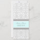 Tarjetas de invitación a la boda en un elegante y romántico patrón de damasco floral clásico azul turquesa pastel, gris y blanco. Personalizar estas invitaciones con los detalles de su boda. Disponible en productos de coincidencia para todas las necesidades de su boda.