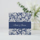 Tarjetas de invitación de bodas con elegante diseño de damasco floral azul marino y blanco. Personalizar estas invitaciones con los detalles de su boda. Disponible en productos de coincidencia para todas las necesidades de su boda.