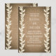 Invitaciones de boda de arpillera rústica y hojas. Personalice para cualquier evento. Artículos coincidentes disponibles.