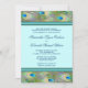 Invitaciones de boda con plumas de pavo real azul turquesa.