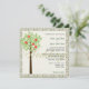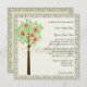 Invitaciones a bodas de novios. Lo mejor para bodas de primavera y verano. Árbol de manzanas con fondo verde claro, con borde decorativo.