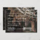 Invitaciones de boda rústicas campestres con una hilera de luces, con un hermoso roble sureño con musgo español, y una cerca blanca debajo, y una hilera de luces colgando del árbol como diseño de fondo. Simplemente agregue su propia redacción de invitación de boda a esta plantilla para hacer sus propias invitaciones de boda rústicas personalizadas en un estilo sureño. Estas son ideales para bodas campestres sureñas y recepciones al aire libre por la noche.