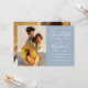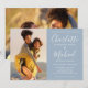 Con tus fotos especiales y nombres de estilo de firma, esta elegante invitación de boda en azul polvoriento se puede personalizar con tu información en letra chic. Diseñado por Thisisnotme©