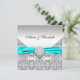 Invitación de boda de diamante azul turquesa y plateado elegante.