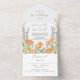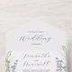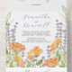 Todas ellas en un triplio de invitaciones a bodas cuentan con flores silvestres acuáticas botánicas en lavanda, naranja y verde sabio. Una gran moda para bodas de primavera y verano en el jardín. Para ver más diseños florales e invitaciones plegadas visite www.zazzle.com/dotellabelle Arte único y diseño de Victoria Grigaliunas de Do Tell A Belle.