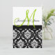 Invitación a la boda monograma Damasco. Diseño de diseño por Elke Clarke ©2009,2010. Gráficos con licencia.com y WhiteWhimsicalWeddings.blogspot.com. Personalizar con los nombres de los monogramas y colores bodas. Añada toda la información de su boda en la parte posterior de la tarjeta utilizando las indicaciones del menú fáciles de usar de Zazzle. Para una segunda opción, consulte el diseño de la invitación con más detalles en la parte posterior.