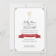 Invitaciones de boda con pancarta roja para brindis de champán elegante.