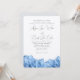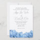 Flores de horangea azul bebé invitan a la boda con un lugar para los nombres de todos los padres en la parte superior. También se incluye la dirección de la recepción (si es diferente de la ceremonia) o simplemente se imprime "recepción a seguir". En las plantillas de texto se utilizan fuentes modernas con los nombres en escritura manuscrita. Color gris claro al reverso. Se pueden cambiar los colores y la redacción - por favor contáctame para obtener ayuda y para hacer coincidir RSVP y otros elementos para tu evento.