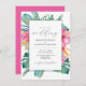 Estas invitaciones nupciales tienen flores tropicales y hojas de palma en tonos rosas, naranjas y verdes. Utilice los campos de plantilla para agregar los detalles del personalizado. Solicitar tarjetas impresas o invitaciones de boda imprimibles de destino. Elegante elección para bodas en la playa en una zona tropical. Para ver más diseños como este visite www.zazzle.com/dotellabelle Arte y diseño de acuarelas únicas de Victoria Grigaliunas de Do Tell A Belle.